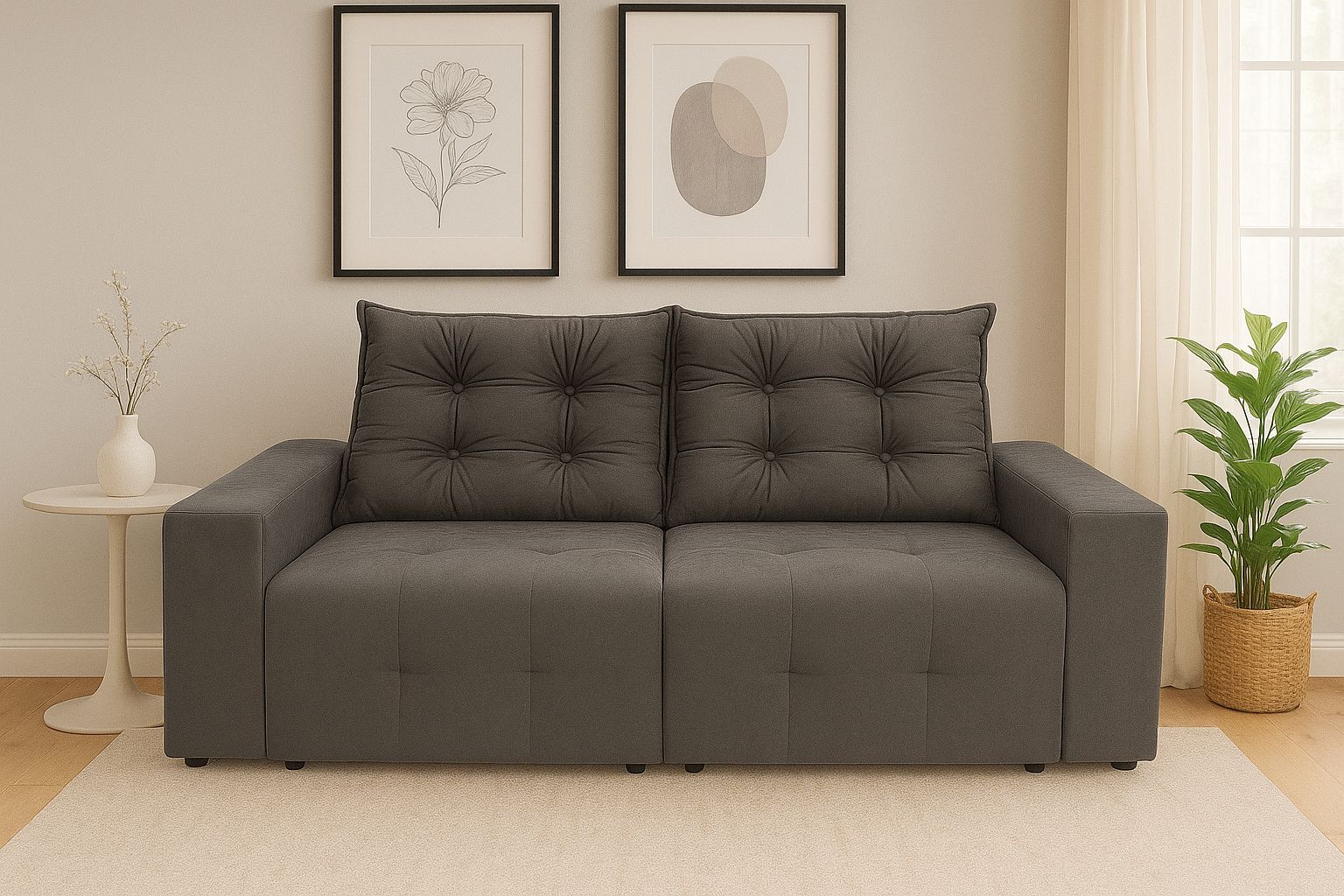 O Sofá Everest na cor CINZA é a escolha perfeita para quem busca conforto absoluto sem abrir mão da elegância. Um dos modelos mais desejados da nossa coleção, ele conquista à primeira vista com seu design imponente e moderno, além de surpreender no toque com seu estofamento macio e acolhedor.